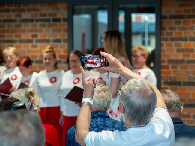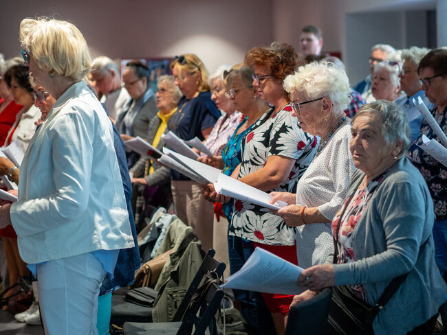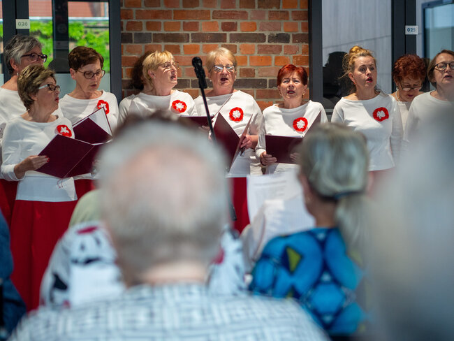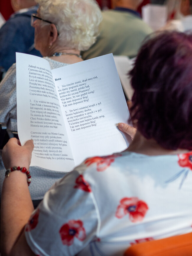Po wykładzie, idąc na kolejne wydarzenie - koncert, przeszliśmy się po wystawie książek i mundurów ze zbiorów Waldemara Handke. Koncert leszczyńskiego Stowarzyszenia Rehabilitacyjnego „Amazonka" przyciągnął wielu gości. Zebraliśmy się w pasażu kultury aby wspólnie śpiewać pieśni patriotyczne. Amazonki przy akompaniamencie klawiszy Ani Środy rozgrzały w gościach pasję do śpiewania. Na początku niektórzy się wstydzili, lecz przy końcu śpiewali wszyscy, młodzi i starsi, nikt nie żałował głosu. Przy „Rocie” i „Czerwonych Makach na Monte Casino” nie jednemu zakręciła się łezka w oku, ale śpiewaliśmy ile mieliśmy powietrza w płucach.