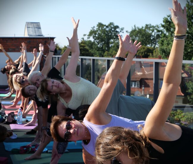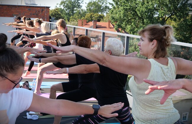 W sobotę (24 sierpnia) na dachu Leszczyńskiej Galerii Książki zostawiwszy na dole troski i zgiełk szykującej się do Rynków Śniadaniowych ulicy oddawano się praktyce jogi. Drugie już i, niestety, ostatnie tego lata zajęcia poprowadziła pochodząca z Leszna trenerka Ewa Lenartowska znana też jako @desert.yogini.