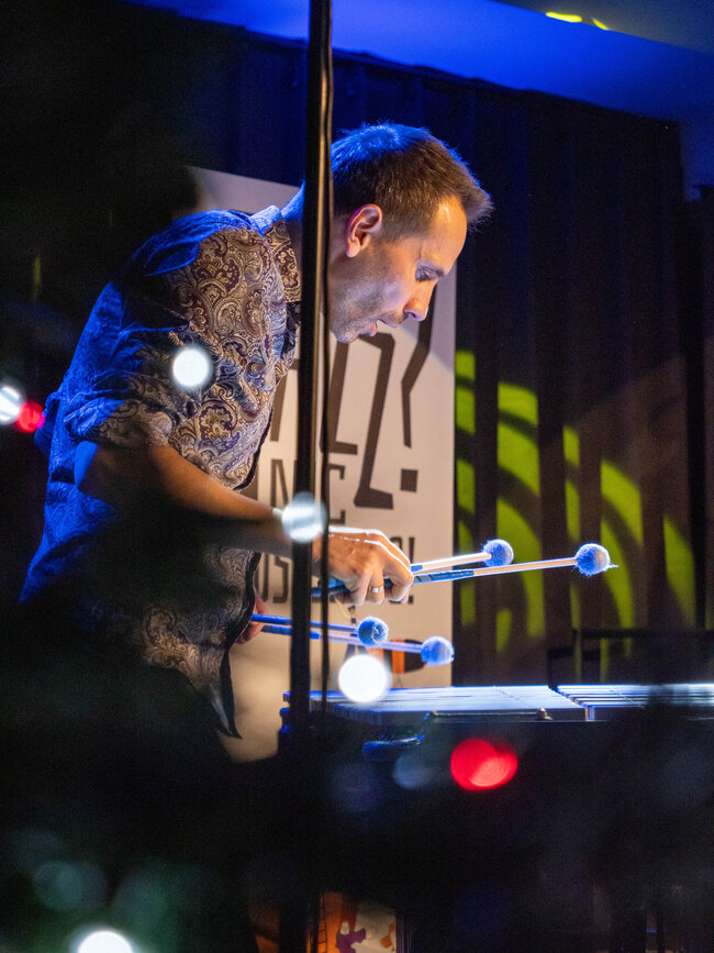 Dominik Bukowski ma na koncie dziewięć autorskich płyt, ponad pięćdziesiąt nagrań gościnnych i tytuł najlepszego wibrafonisty w plebiscycie Jazz Top zdobywany wielokrotnie w latach 2020–2025. Jego muzyczna droga prowadziła od Elbląga, przez Gdańsk, aż po Wydział Jazzu w Katowicach, gdzie ukończył studia. W Lesznie udowodnił po raz kolejny, że jego wrażliwość i technika potrafią wciągnąć także tych, którzy dopiero zaczynają swoją przygodę z jazzem.