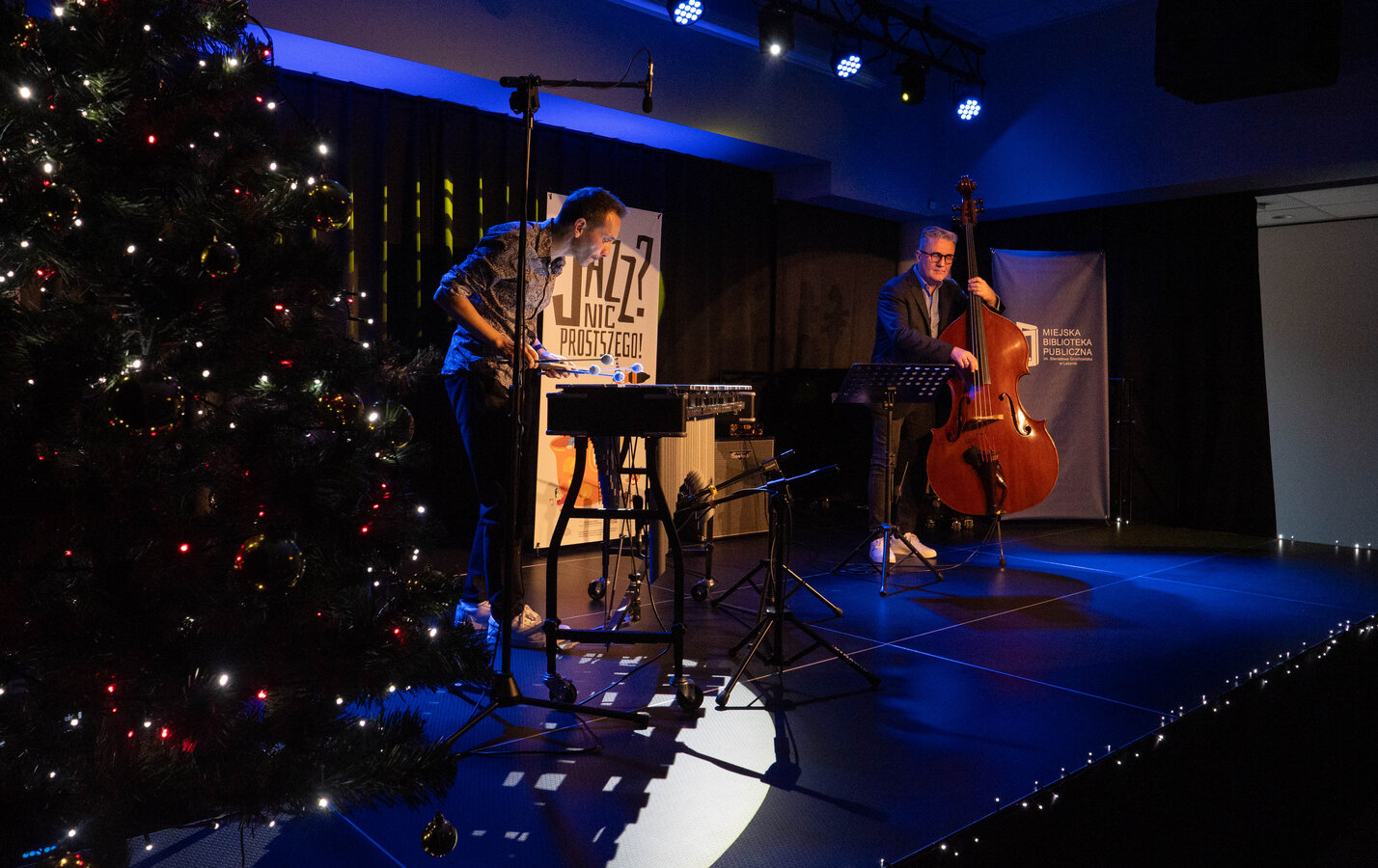 Poranek w Leszczyńskiej Galerii Książki upłynął pod znakiem jazzu — 3 grudnia 2025 r. wystąpił u nas Dominik Bukowski, jeden z najważniejszych wibrafonistów w Polsce. Artysta zaprezentował program łączący subtelność brzmienia z wirtuozerią, a towarzyszył mu Piotr Lemańczyk, kontrabasista ceniony za charakterystyczne brzmienie i wyjątkową muzyczną wyobraźnię. Duet stworzył kameralny, skupiony klimat, w którym każdy dźwięk miał swoje miejsce — idealny sposób na rozpoczęcie dnia muzyką z najwyższej półki.