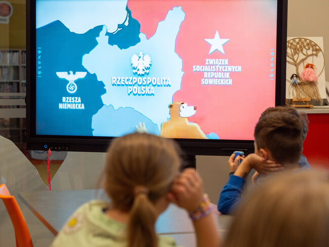 Rozpoczęliśmy od starszej grupy, która uczyła się o bitwie pod Monte Casino oraz niedźwiedziu - Kapralu Wojtku. Aby zgrabnie wytłumaczyć dzieciom historie bitwy odtworzyliśmy im krótki film edukacyjny, który poprowadził miś Wojtek. Dowiedzieliśmy się z niego jak przebiegała II WŚ, kiedy i jak odbyła się bitwa pod Monte Casino oraz skąd wziął się niedźwiedź w Armii Polskiej. Następnie przeszliśmy do przeczytania fragmentów z książki „Dziadek i niedźwiadek” o perypetiach naszego ulubionego misia. W jednym z nich poznaliśmy Kaśkę - małpkę, która również była podopieczną 22 kompanii zaopatrywania artylerii. Na koniec dzieci zagrały w memory z obrazkami Zwierzęcej Brygady.