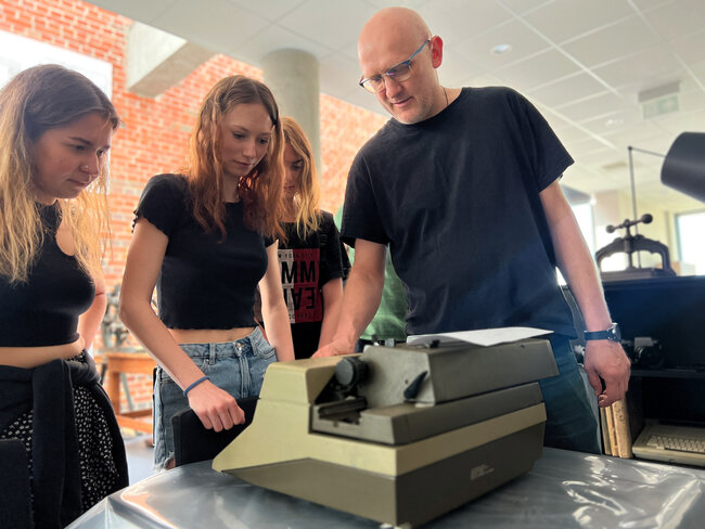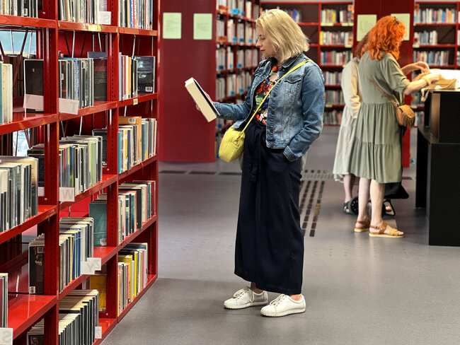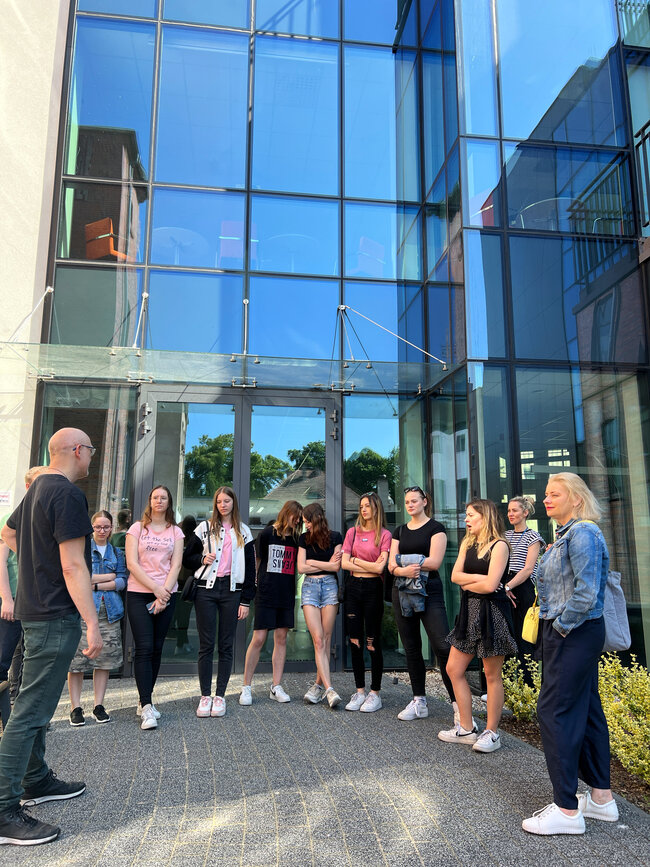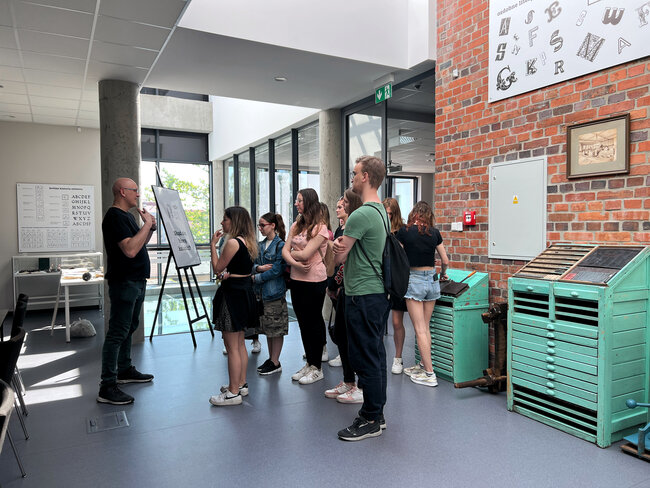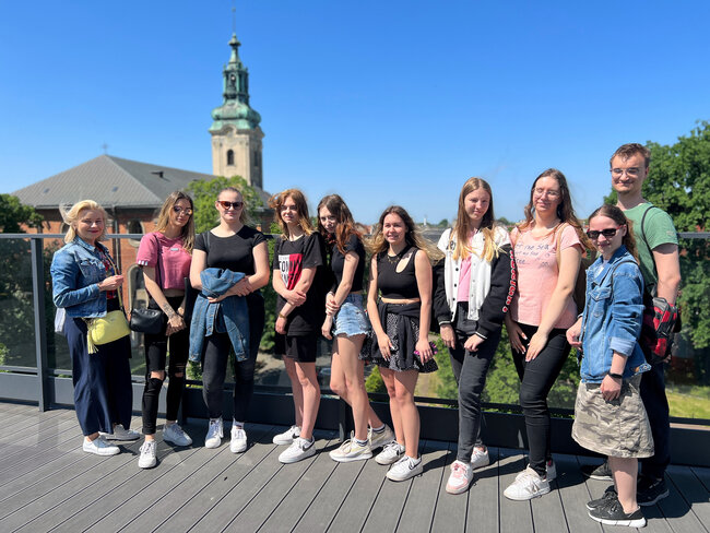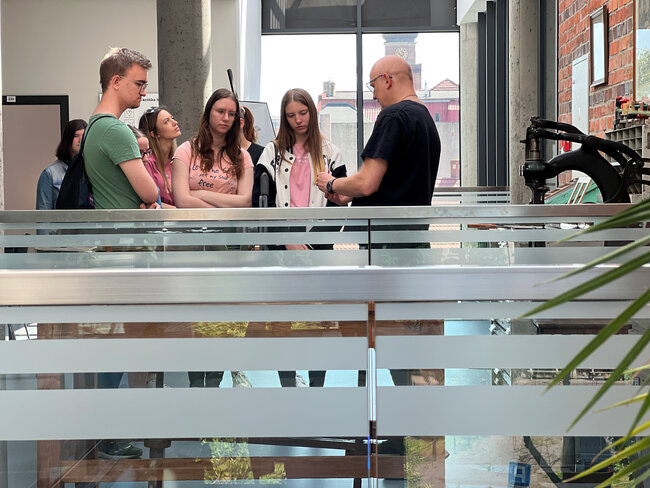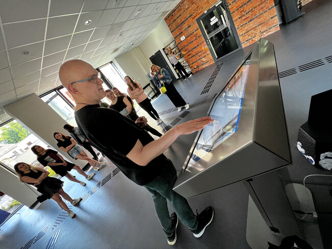 Mimo że nowa siedziba biblioteki została udostępniona dla mieszkańców już prawie rok temu, to kilka razy w miesiącu pojawiają się u nas kolejne grupy, które chcą zwiedzić Leszczyńską Galerię Książki. Dzisiaj (1 czerwca 2023 r.) gościliśmy uczniów Zespołu Szkół Ekonomicznych w Lesznie. Piękne wnętrza pokazał i o multimedialnych właściwościach, bogatych zbiorach i nowych możliwościach opowiadał Paweł z Działu Edukacji oraz Ewa z Działu Informacyjno-Bibliograficznego.