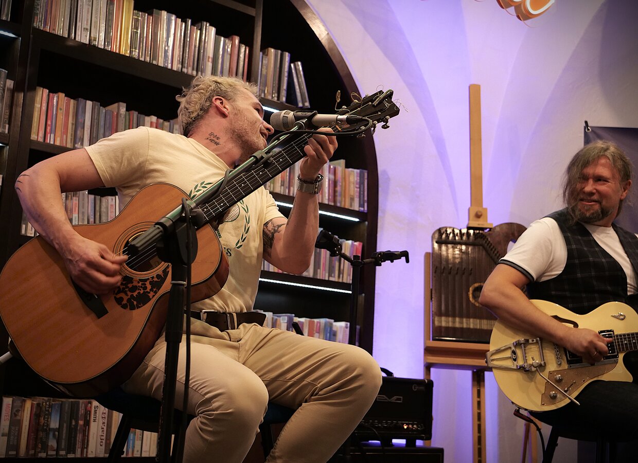 Nie ma trywialnych koncertów na scenie z książkami, ale ten był wyjątkowy jeszcze bardziej, niż inne. Na malutkiej scenie spotkali się „Najlepszy bluesowy głos 2019 roku" według czytelników magazynu „Twój Blues" i Jacek Jaguś - jeden z najlepszych gitarzystów blues'owych w Polsce.