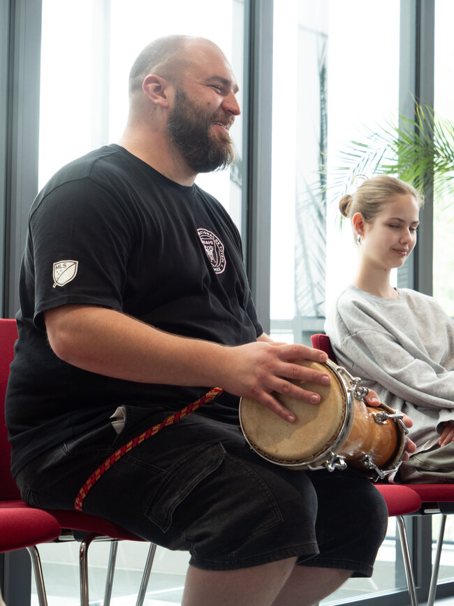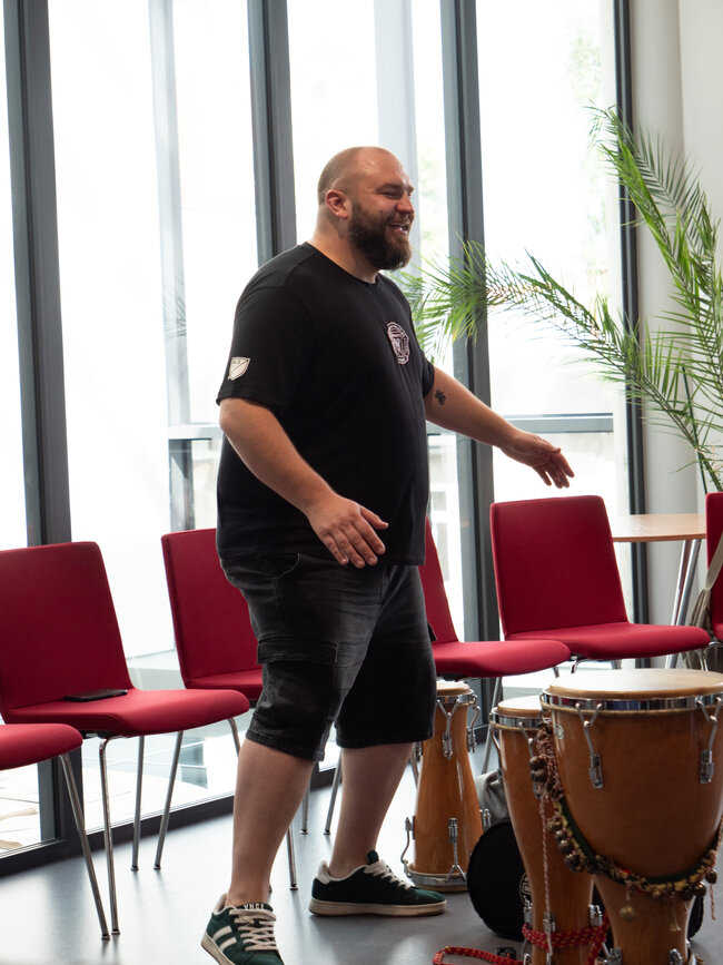 Zajęcia rozpoczął Maciej Giżejewski i jego niezwykle energetyczne warsztaty „Etniczne języki rytmu”. Uczestnicy dali się porwać afrykańskim bębnom, śpiewowi i tańcowi, eksplorując pierwotne źródła rytmu.