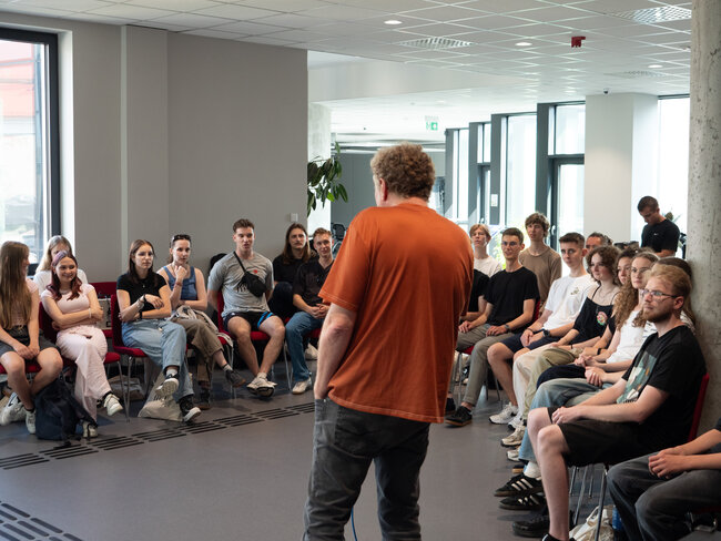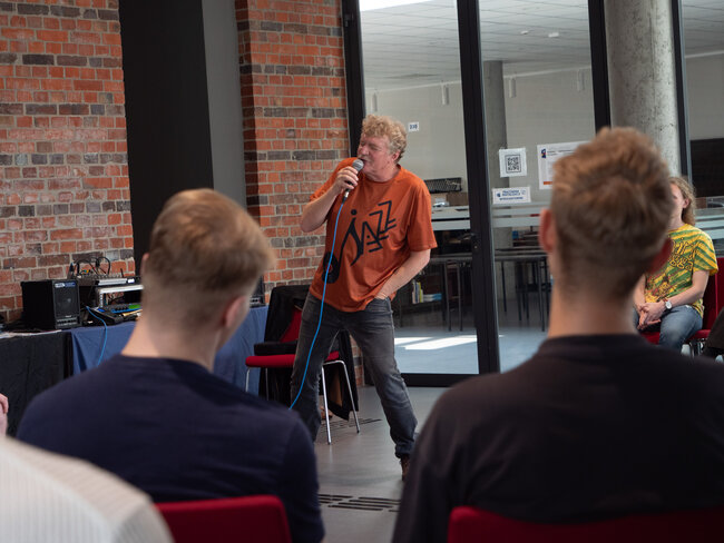 Popołudnie należało do Andrzeja Winiszewskiego, który zabrał warsztatowiczów w pasjonującą podróż po historii jazzu – od Nowego Orleanu, przez Harlem, po jazzową literaturę.