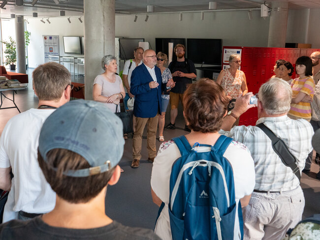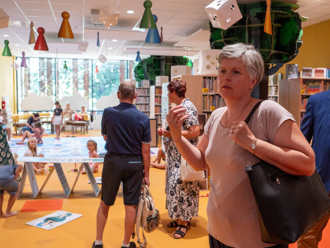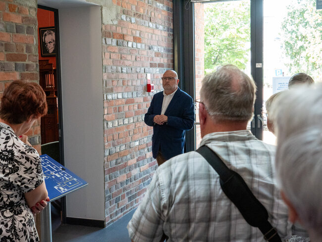Delegacja zajrzała także do Wypożyczalni Młodzieżowej i Dziecięcej, tętniących życiem i kolorami, a także do Sali Audiowizualnej, gdzie goście obejrzeli fragment jazzowego koncertu. Nie mogło zabraknąć wizyty w Pokoju Grochowiaka, poświęconym twórczości jednego z najwybitniejszych poetów naszego regionu.