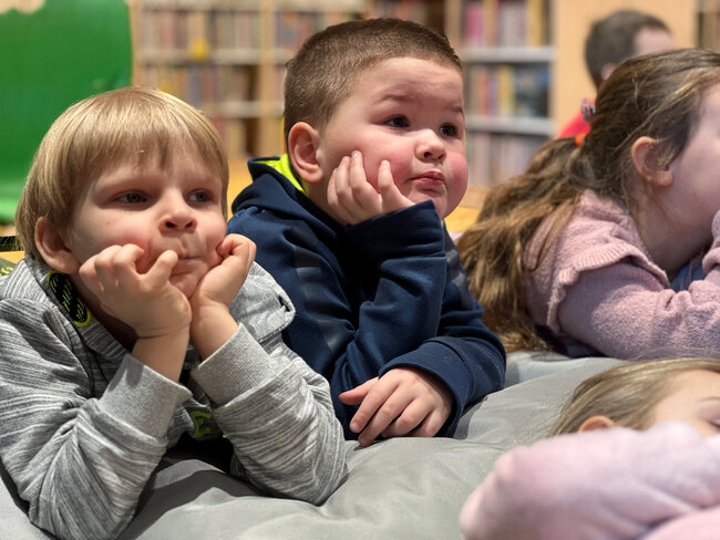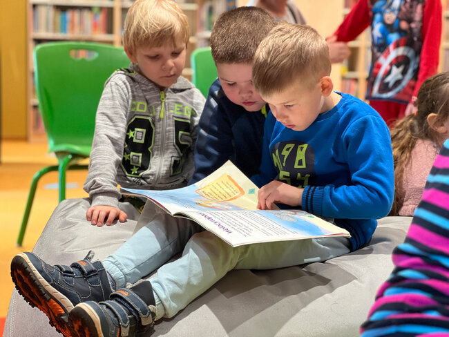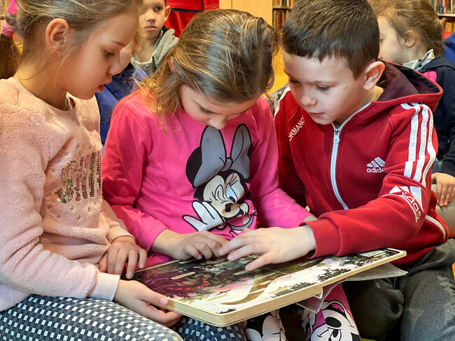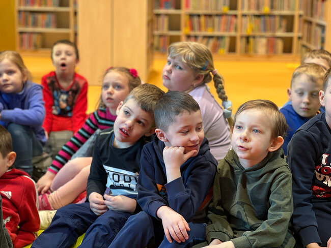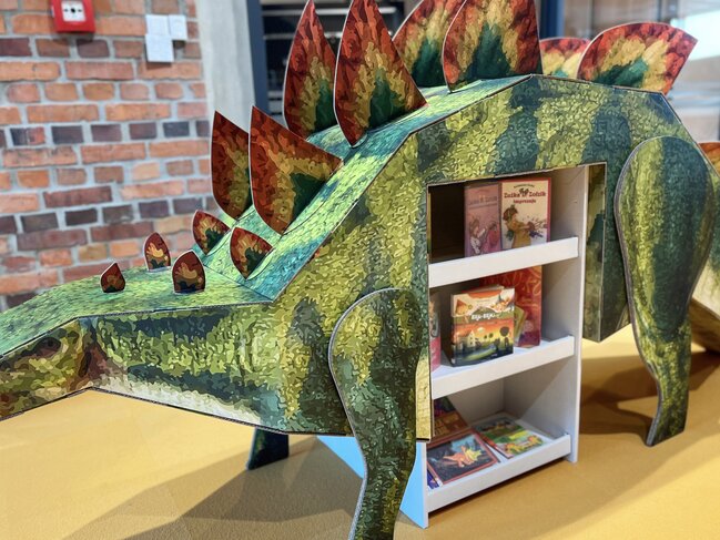 W związku z obchodzonym w zeszłą niedzielę (26.02.2023) DNIEM DINOZAURA oraz w nawiązaniu do scenografii, która zdobi Wypożyczalnię dla Dzieci - nasze zajęcia literackie opanowały Dinozaury.