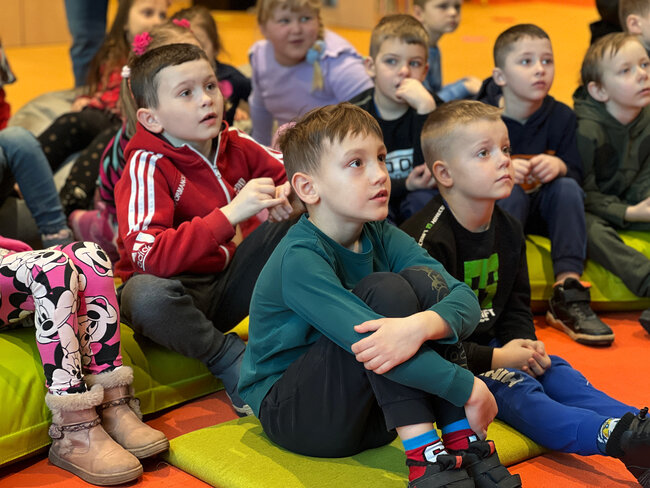 Temat jest bardzo entuzjastyczne przyjmowany przez naszych milusińskich, którzy codziennie zaskakują nas swoją wiedzą na temat tych prehistorycznych stworzeń. Czytanki, układanki czy śpiewanki to tylko niektóre z form aktywności na tych zajęciach. Przy okazji prezentacji multimedialnej dzieci mają okazję wymienić się swoją wiedzą i pogłębić własną, a czytelnicze zasoby naszych regałów na temat tych zwierząt, ciekawią niejednego z nich.