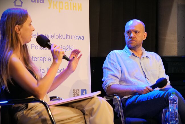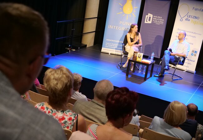 Alerty burzowe nie przestraszyły kilkudziesięciu osób. Gdy za oknem szalała ulewa Szabłowski razem z prowadzącą spotkanie Agnieszką Ptaszyńską zabrał nas w świat niezwykłych opowieści o swoich spotkaniach (był tamj ponad 60 razy - sic!) w Ukrainie. Choćby tę o pani Hani z książkowej okładki: