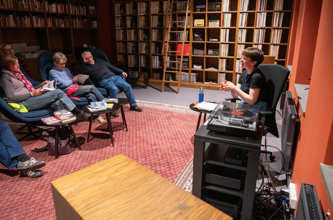 Spotkanie poprowadzono w formie muzycznego dialogu: uczestnicy słuchali nagrań z bibliotecznej fonoteki, wymieniali się wrażeniami i z ciekawością odkrywali, jak twórczo przenikają się dwa światy – pozornie odległe, a jednak zaskakująco zgodne rytmicznie.