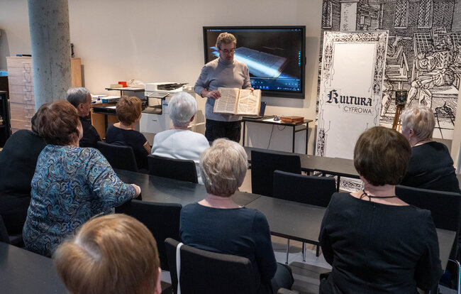 Uczestnicy wydarzenia mieli okazję zapoznać się z efektami digitalizacji historycznych zbiorów oraz zobaczyć od kuchni, jak działa Pracownia Digitalizacji. Dużym zainteresowaniem cieszyła się prezentacja zdigitalizowanych materiałów, które dzięki nowym technologiom zyskały drugie życie i stały się dostępne dla znacznie szerszego grona odbiorców.