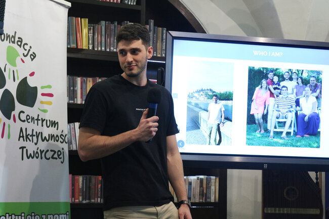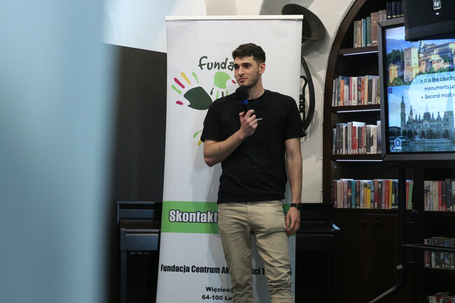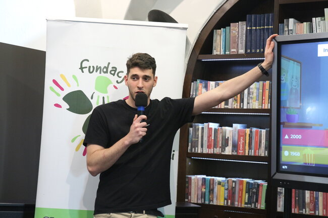 We wtorek 9 maja 2023 roku wyruszyliśmy w podróż do Hiszpanii, a naszym przewodnikiem był Alberto, wolontariusz Fundacji Centrum Aktywności Twórczej, która jest inicjatorem wydarzenia. Hiszpan opowiedział o tym, jak wygląda życie w jego kraju, pokazał zdjęcia swojej rodziny i zdradził kilka ciekawostek na temat zwyczajów, których turyści podczas krótkiego pobytu nie są w stanie zauważyć. Dowiedzieliśmy się m.in. po co Hiszpanom sjesta, kto zamiast Świętego Mikołaja przynosi dzieciom prezenty w święta i dlaczego w Sylwestra jedzą winogrono 12 sekund przed północą. Na koniec spotkania uczestnicy zagrali w Quiz, dotyczący wiedzy o tym przepięknym europejskim państwie. Posłużyła im do tego aplikacja mobilna Kahoot. Zabawa była atrakcyjnym podsumowaniem spotkania. Uczestnicy aktywnie odpowiadali na pytania dotyczące narodowych atrybutów, dań, tańca, a także te z zakresu geografii i sportu.