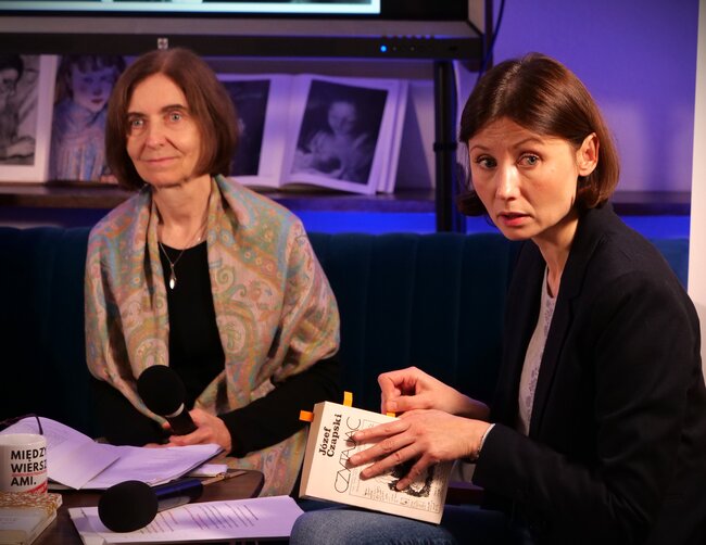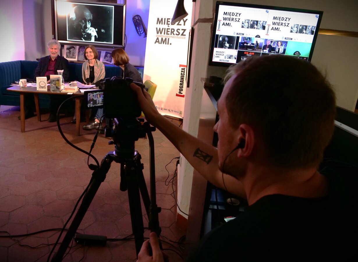Nasze biblioteczne studio filmowe wróciło do Biblioteki Ratuszowej. Gośćmi Barbary Hałusek byli - prof. dr hab. Mirosława Ołdakowska-Kufel, Kierownik Katedry Literatury Polskiej XX i XXI Wieku w Katolickim Uniwersytecie Lubelskim Jana Pawła II oraz Jan Choroszy, doktor habilitowany w Instytucie Filologii Polskiej Uniwersytetu Wrocławskiego. Rozmowa była pasjonująca, wsparta fotografiami, filmami i nagraniami głosu gawędziarza Vincenza. Jak wszystkie, tak i to spotkanie transmitowaliśmy na żywo na naszej stronie na Facebooku. Całość na język migowy tłumaczyła niezastąpiona tłumaczka symultaniczna - Ewa Gano. Spotkanie najlepiej podsumowuje komentarz jednego z uczestników tej transmisji:
