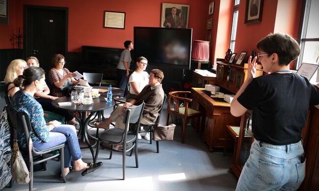 To nieformalny DKK, ale z fantastycznymi tradycjami. Klubowicze spotykają się co miesiąc od dwóch lat. Po raz pierwszy zdecydowali się na wyjazd z Poznania. Po Lesznie oprowadzała je profesor Magda Potok, a w LGK rolę przewodnika przejął dyrektor MBP Andrzej Kuźmiński. Czarował opowieściami od dachu aż po Pasaż kultury najwięcej emocji wywołując w Czytelni muzycznej. Na koniec DKK zasiadł do tego, co kocha najbardziej - dyskusji o książce. Bohaterką tego popołudnia był zbierający fantastyczne recenzje ,,Traumaland’’ Michała Bilewicza.
