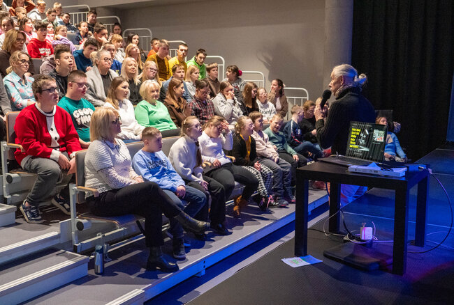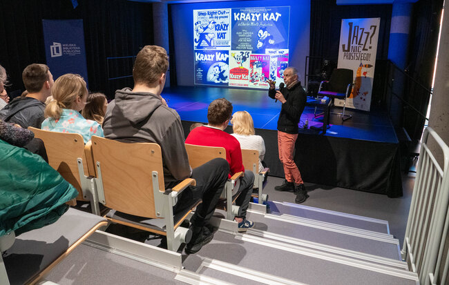 Andrzej Winiszewski poprowadził warsztaty w formie interaktywnej opowieści. Dzieci nie tylko słuchały, ale też aktywnie uczestniczyły w spotkaniu, poznając instrumenty, ich brzmienia i role w muzycznej historii. Znane postacie i melodie stały się punktem wyjścia do rozmowy o tym, czym jest jazz i jak można go słuchać bez nut, za to z otwartymi uszami.