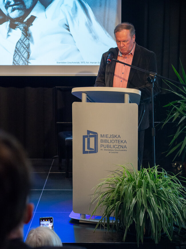 Wydarzenie rozpoczęła dr Janina Małgorzata Halec - wieloletnia dyrektor Miejskiej Biblioteki Publicznej im. Stanisława Grochowiaka w Lesznie witając gości i otwierając sesję. Następnie przeszła do swojego wykładu „Imienia Grochowiaka” na którym przybliżyła nam życie i historie poety, jak również jego rolę (już po śmierci) w rozwoju Miejskiej Biblioteki Publicznej w Lesznie, a jeszcze Wcześniej Wojewódzkiej Biblioteki w Lesznie oraz innych placówek jego imienia.