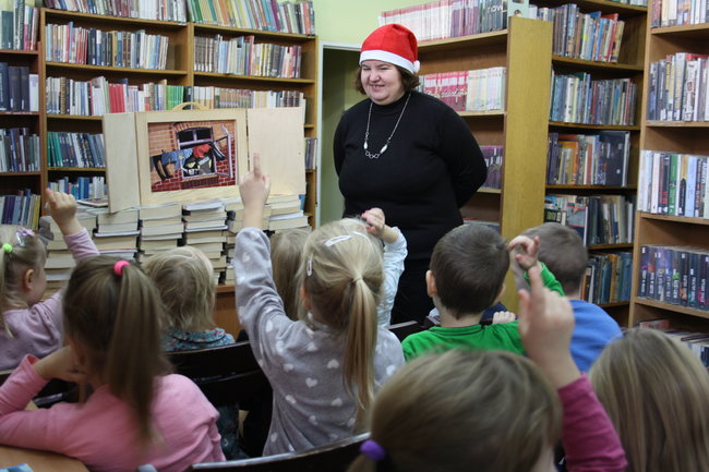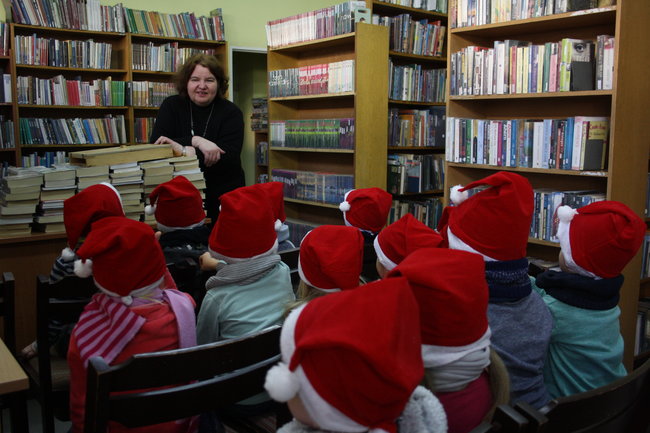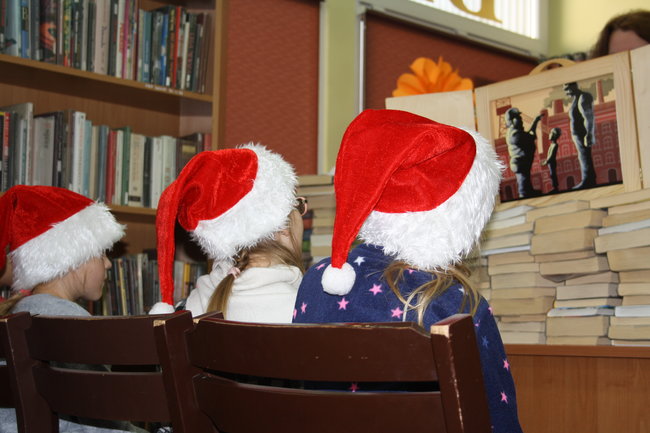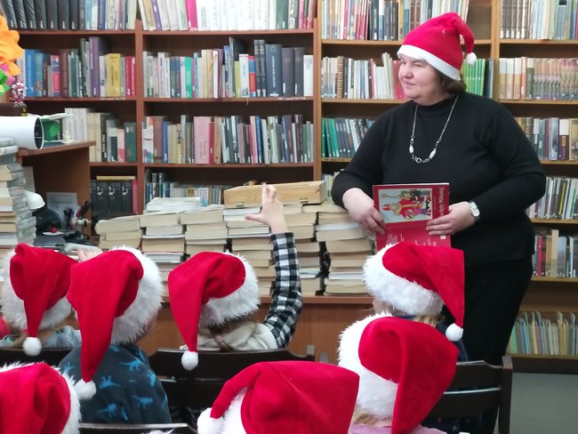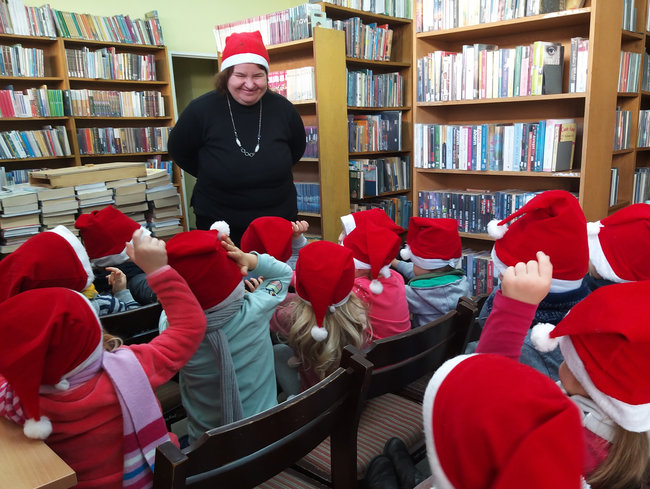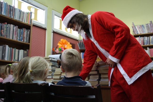 Przedszkolaki wysłuchały też legendy o Świętym Mikołaju. Punktem kulminacyjnym i najbardziej oczekiwanym momentem czytelniczego eventu było pojawienie się gościa z dalekiej Laponii, który opowiadał o sobie i obdarowywał słodkimi niespodziankami. Przedszkolaki zaśpiewały mu przygotowane piosenki, wyrecytowały wierszyki. Miło spędzony czas zakończyły pamiątkowe zdjęcia.