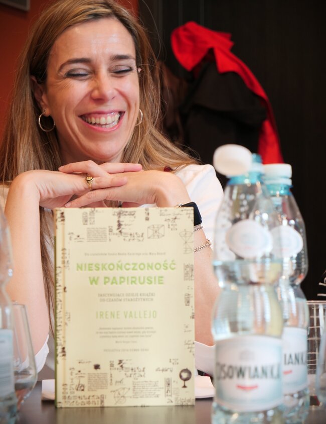 prof. dr Maria Paz Cepedello Moreno z uniwersytetu w Cordobie przedstawiła nie powieść, a książkę popularnonaukową - ,,Nieskończoność w papirusie’’ Irene Vallejo. Książka ta stała się światową sensacją i zdobyła tytuł najlepszej książki popularnonaukowej na świecie roku 2019. To historia o historii książek napisana w tak fascynujący i odkrywczy sposób, że - jeśli jest choć w połowie tak pasjonująca, jak frapująco opowiedziała o niej prof Mari Paz - czytanie będzie prawdziwą intelektualną przygodą. To książka książkach w najróżniejszych formach ale też o skrybach, ilustratorach, tłumaczach, obwoźnych sprzedawcach, nauczycielach, szpiegach, buntownikach i poszukiwaczach przygód…