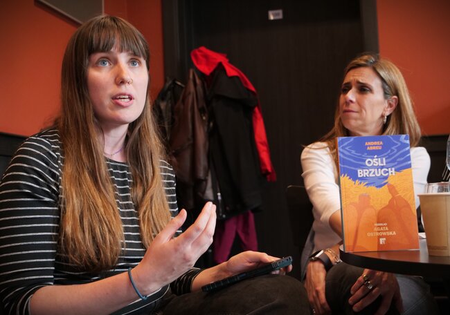 Paula Romero Polo z uczelni w Madrycie opowiedziała o powieści Andrei Abreu ,,Ośli brzuch’’. To kolejny debiut i kolejna słynna w świecie powieść (przetłumaczona na 30 języków). Pochyla się nad historią dwóch dziewczynek, a akcja jej toczy się w 2000 roku. Abreu w sugestywny sposób oddaje ducha czasu i z wrażliwością oddaje dziecięcy punkt widzenia i rozumienia świata. Książka momentami komiczna a momentami tragiczna, ale odkrywcza. Narratorka w kreatywny sposób próbuje szukać nowych form wyrazu i momentami rezygnuje na przykład z interpunkcji.