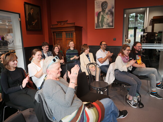 Gośćmi spotkania byli iberyści z uniwersytetów hiszpańskich i UAM. Każdy rekomendował jedną książkę i każdy opatrzył ją osobistą dedykacją dla czytelników MBP. Lada dzień wszystkie będą dostępne do wypożyczenia. Warto zapisać się do kolejki, bo to pierwsza liga literatury. Najczęściej - debiuty.