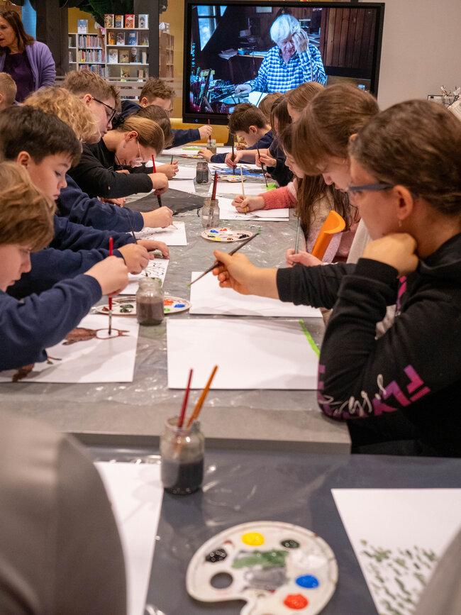 Młodzi uczestnicy tworzyli, eksperymentowali i uczyli się patrzeć na ilustrację oczami artysty, który całe życie budował swoje własne światy. Instruktorka prowadziła ich krok po kroku przez proces twórczy: od pierwszych odważnych plam, przez budowanie kompozycji, aż po detale, które sprawiają, że rysunek nagle zaczyna „oddychać”. Atmosfera? Żywa, pełna śmiechu, skupienia i tej mieszanki ekscytacji z niedowierzaniem, że „wow, to naprawdę ja narysowałem?”.