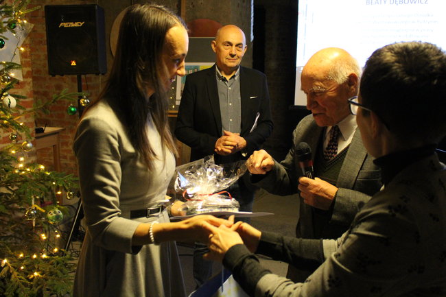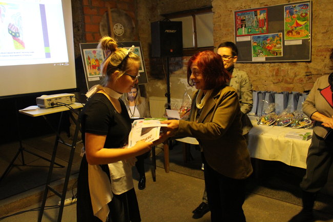 Komisja postanowiła uhonorować dyplomem panią Beatę Dębowicz, nauczyciela w Specjalnym Ośrodku Szkolno-Wychowawczym w Rydzynie , za szczególne osiągnięcia w pracy artystycznej oraz kształtowanie wrażliwości estetycznej uczniów.