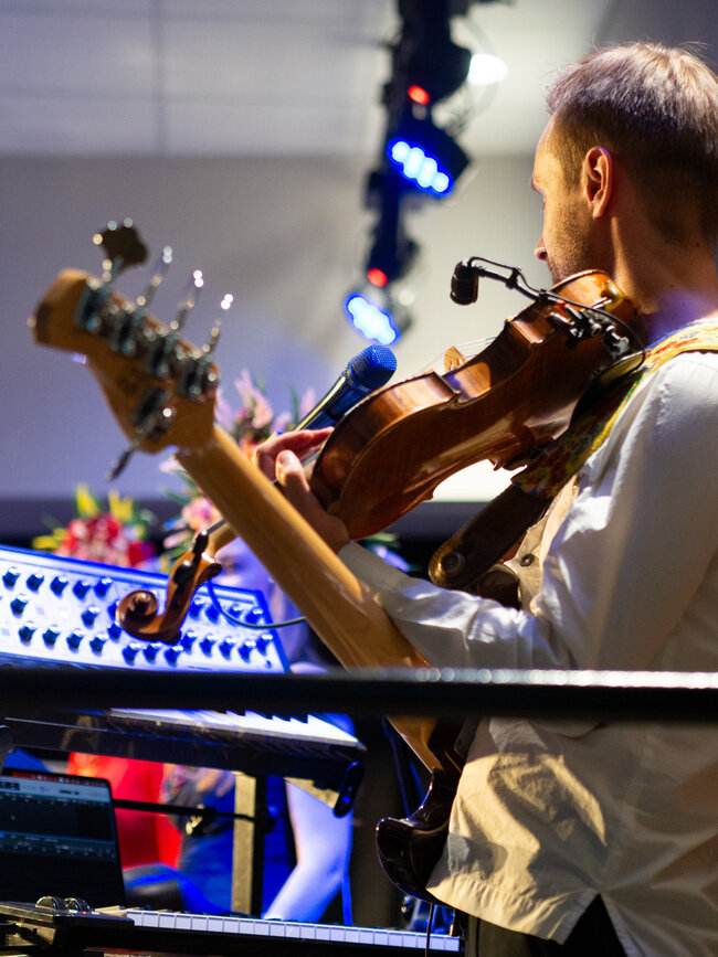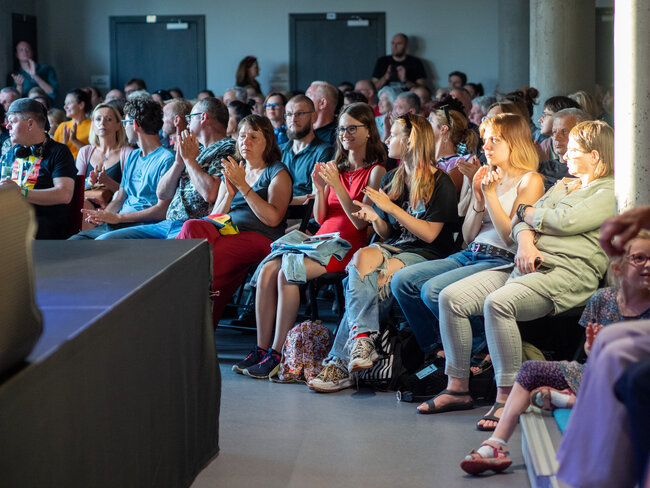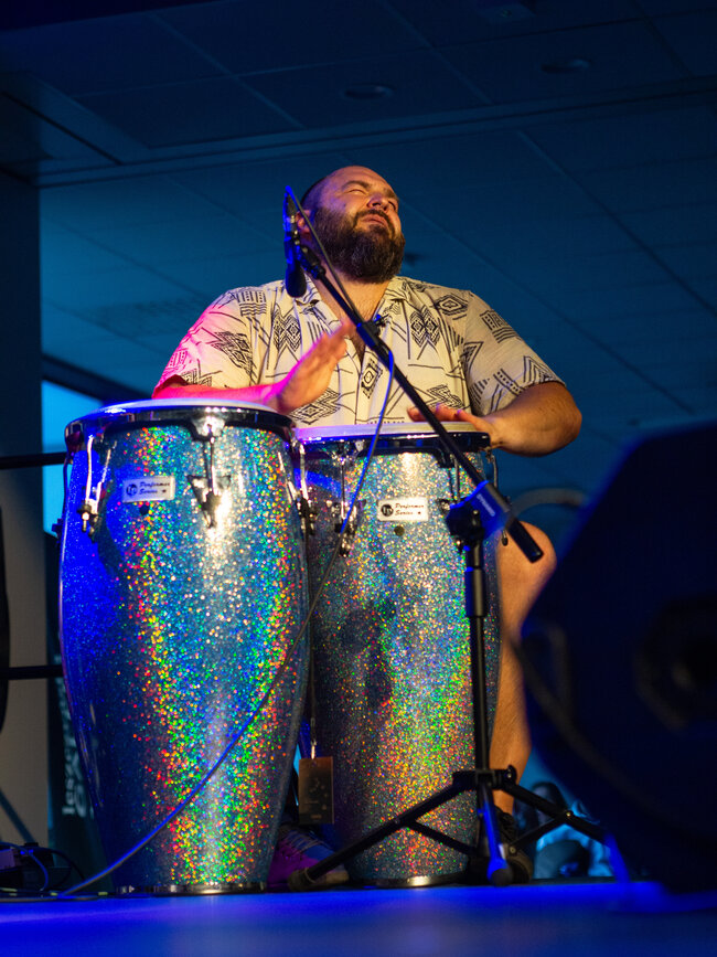 Wczorajszy wieczór (17.07) w Leszczyńskiej Galerii Książki przejdzie do historii jako jeden z najbardziej energetycznych i radosnych, a już na pewno do tych z największą liczbą publiczności, bo pojawiło się u nas ponad 250 osób! Zespół DAGADANA zagrał koncert, który porwał nas w szaloną podróż muzyczną przez ukraińskie łąki i polskie góry aż po samo niebo. A wszystko to w ramach 20. Międzynarodowych Warsztatów Jazzowych!