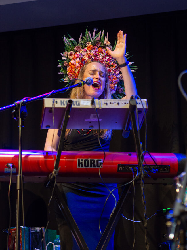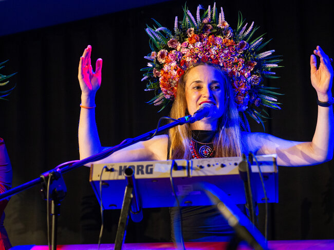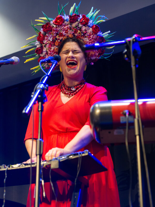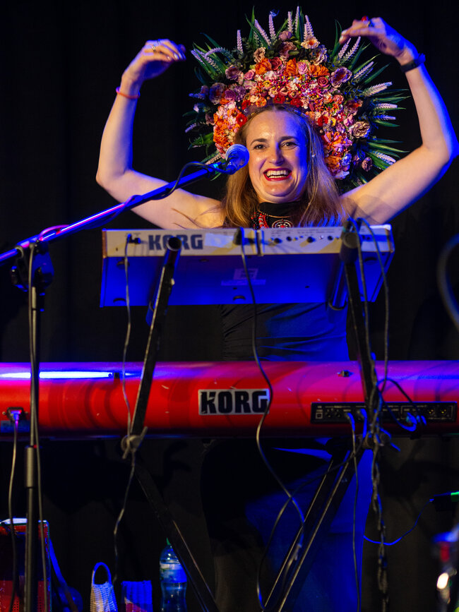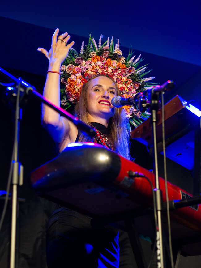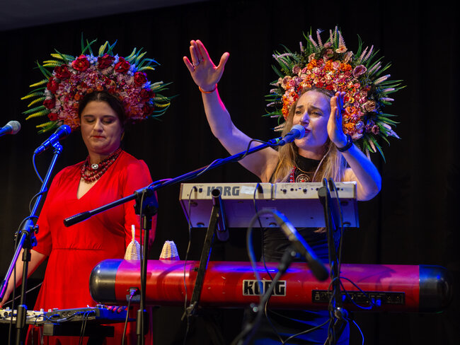 Zespół był zachwycony, mogąc po raz pierwszy zagrać w Lesznie (choć grali już prawie na całym świecie), a energia widowni tylko potęgowała radość z występu. DAGADANA, dla tych, którzy jeszcze nie mieli przyjemności poznać, to prawdziwy muzyczny fenomen. Od 2008 roku Daga Gregorowicz (Polka z Poznania) i Dana Vynnytska (Ukrainka) tworzą niezwykły duet, który dziś wspierają Mikołaj Pospieszalski (facet od wszystkiego: kontrabas, skrzypce, syntezator i wokal) oraz Bartosz Mikołaj Nazaruk (perkusja – mistrz bębnów!). Ich muzyka to szalona mieszanka polskiej i ukraińskiej tradycji, podlana sosem jazzu, elektroniki i wszystkiego, co wpada im w ręce. Wczoraj Leszno miało okazję usłyszeć to wszystko na żywo i – cóż tu kryć – byliśmy zachwyceni!
