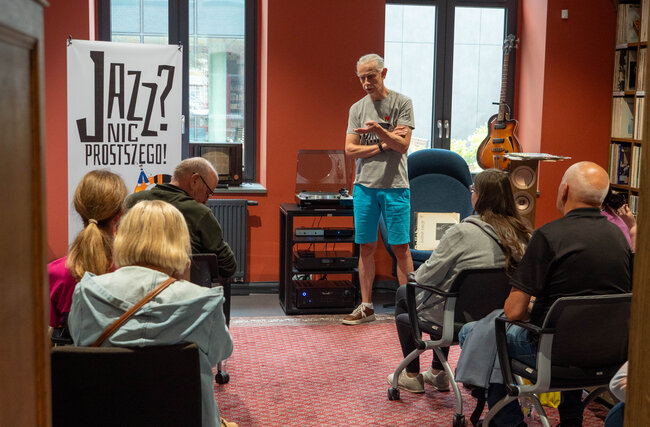 W ramach projektu „Jazz? Nic prostszego!” w czwartek, 17 lipca, w Czytelni muzycznej Leszczyńskiej Galerii Książki odbyły się warsztaty „Muzyczne podróże po świecie jazzu” skierowane do seniorów oraz osób niewidomych i niedowidzących z leszczyńskiego koła Polskiego Związku Niewidomych. Warsztaty poprowadził Andrzej Winiszewski.