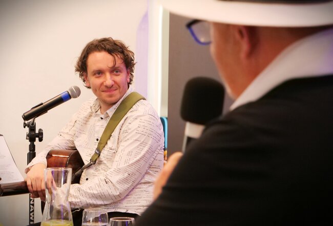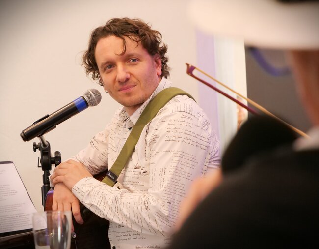 Chwilę później sceną zupełnie zawładnął pierwszy gość Gabrieli - Przemysław Mazurek, grajek i tekściarz - jak sam siebie przedstawia.