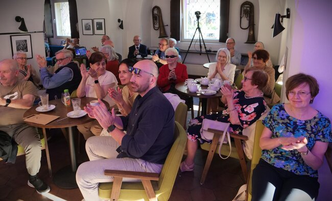 - Pomysł na tytuł spotkań należy do dyrektora Biblioteki. Nie miałbym śmiałości... - uśmiechał się skromnie Gabriel Roszak poprawiając wykwintny kapelusz i biały szal. - Było czterech Gabrieli: Archanioł, głupi Gabryś, prezydent i ja. Umówimy się - ta niedziela będzie dla pozostałych trzech - żartował.
