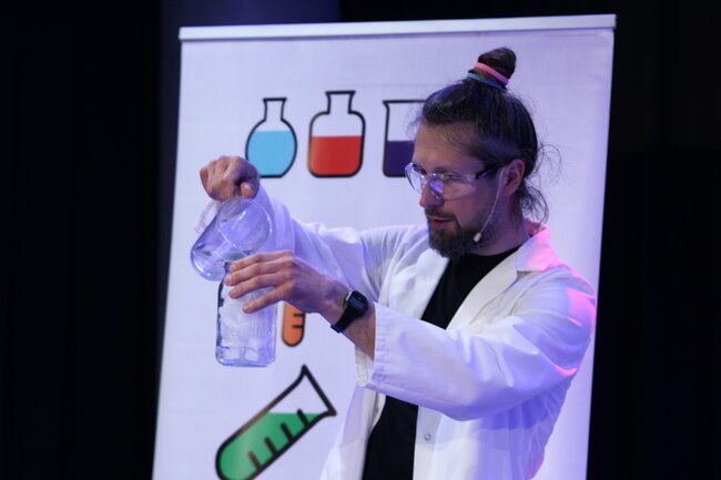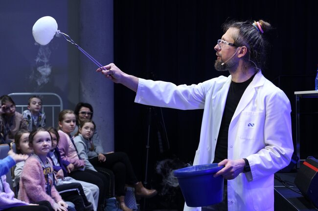 Zajęcia były podzielone na dwie części. Najpierw uczestnikom została wyświetlona prezentacja multimedialna, która stanowiła podsumowanie całego cyklu. W drugiej części uczniowie wzięli udział w wykładzie z chemii i fizyki o wodzie, jej właściwościach i roli w przyrodzie. Dzieci aktywnie uczestniczyły w pokazie, podczas którego poznały "na własnej skórze" właściwości, reakcje i zjawiska takie jak sorpcja, adhezja, kohezja, rozpuszczalność, asocjacja, dysocjacja, ciepło właściwe, lepkość, synteza czy przemiany fazowe. Zajęcia poprowadził Mateusz Stocki - dydaktyk chemii, profesjonalny popularyzator nauki, jeden z pierwszych w Polsce. Pomysłodawca projektu popularyzacji nauki ArtScience.