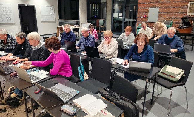 Na kolejnych warsztatach cyfrowych uczestnicy mieli okazję zobaczyć proces digitalizacji „od kuchni” w Pracowni Digitalizacji. Andrzej Przewoźny pokazał sprzęt, techniki i etapy powstawania cyfrowych kopii zbiorów historycznych. Warsztat był okazją do bezpośredniego kontaktu z technologią, która pozwala zachować dla przyszłych pokoleń lokalne dziedzictwo piśmiennicze. Wydarzenie odbyło się 4 grudnia 2025 r.