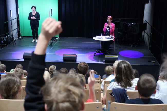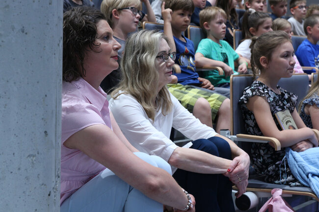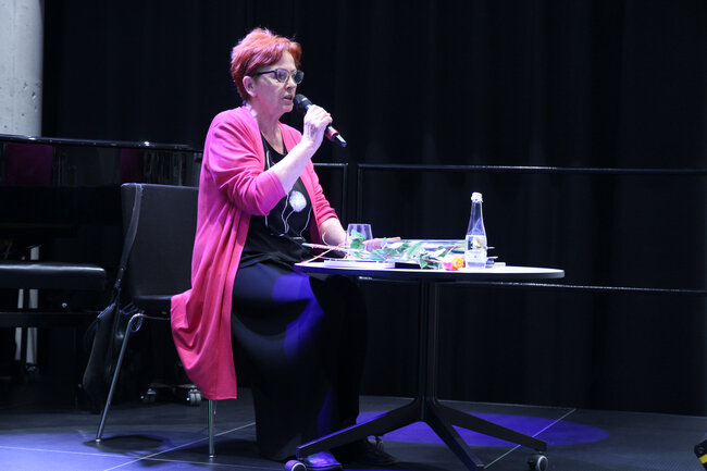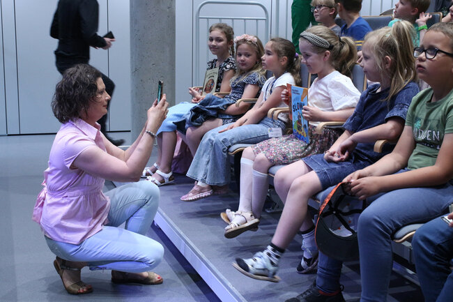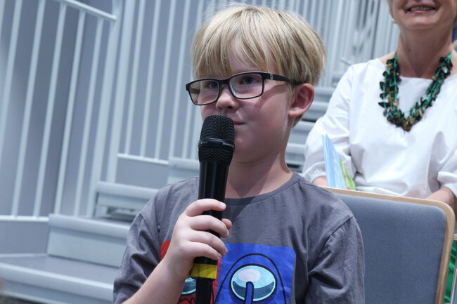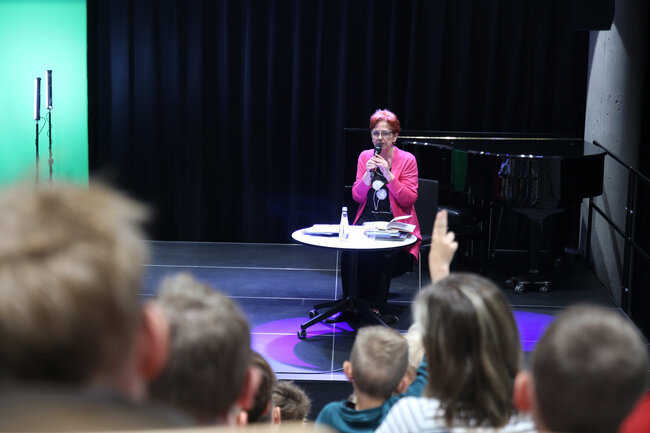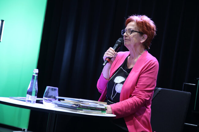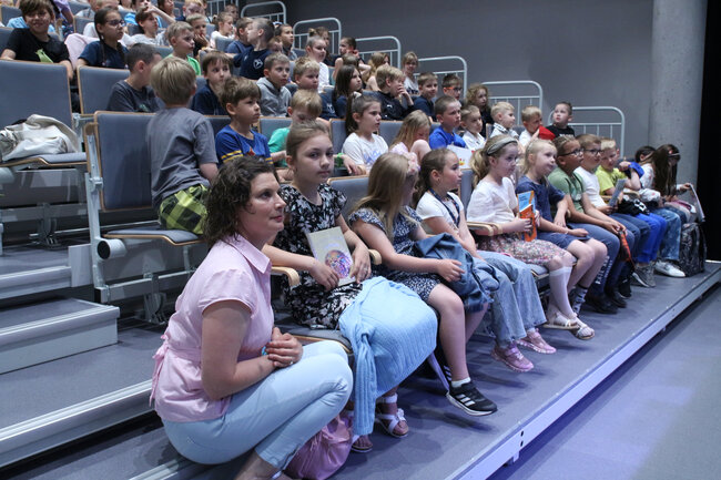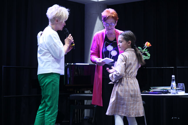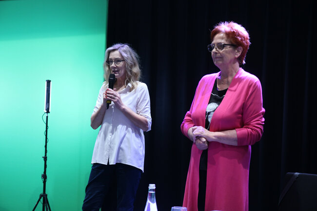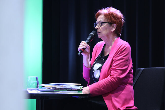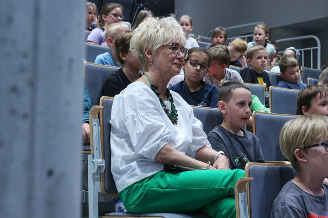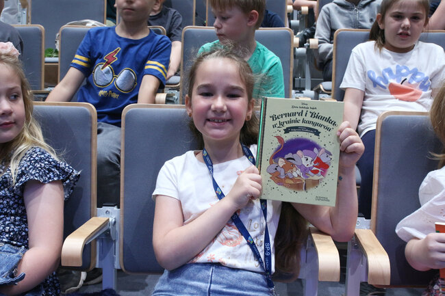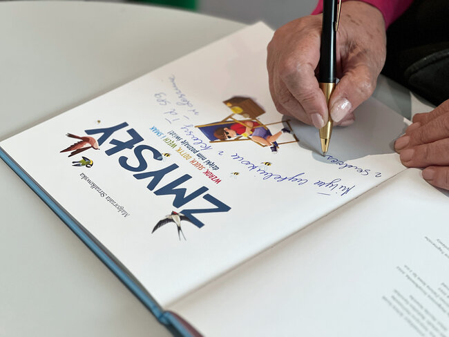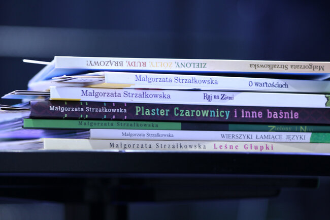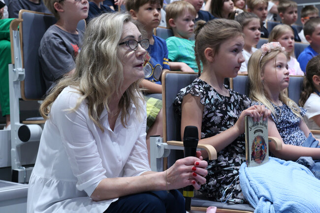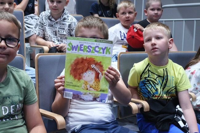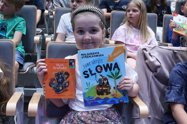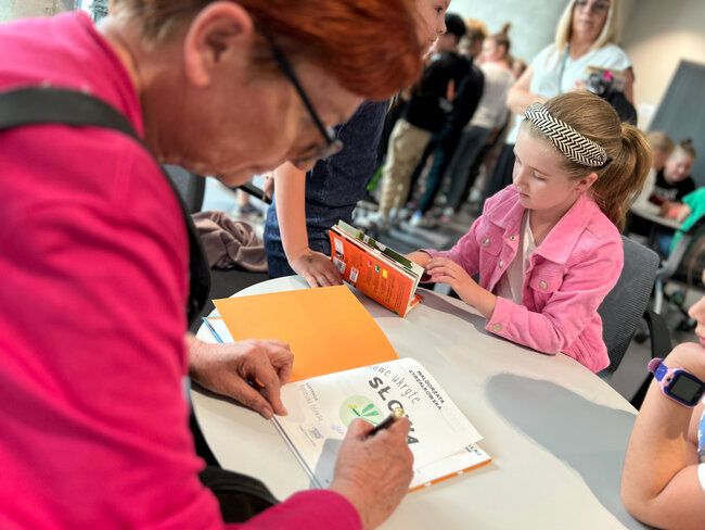 - Czym są wartości? - to kolejne pytanie, które padło ze sceny. Dzieci chętnie rzucały swoje propozycje, a Strzałkowska wyjaśniła im to zagadnienie w swoim stylu, czyli czytając kolejny wiersz: "Krzyś i chomik". Nie zabrakło także zabawnych łamańców językowych, których odgadywanie sprawiło dzieciom mnóstwo frajdy. Na koniec spotkania rolę się odwróciły i publiczność miała okazję zadać pytania autorce, a także dostać dedykację do książki i zapozować do wspólnego zdjęcia.