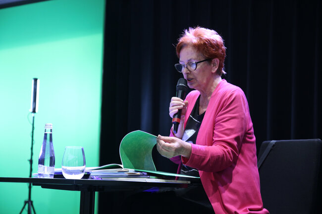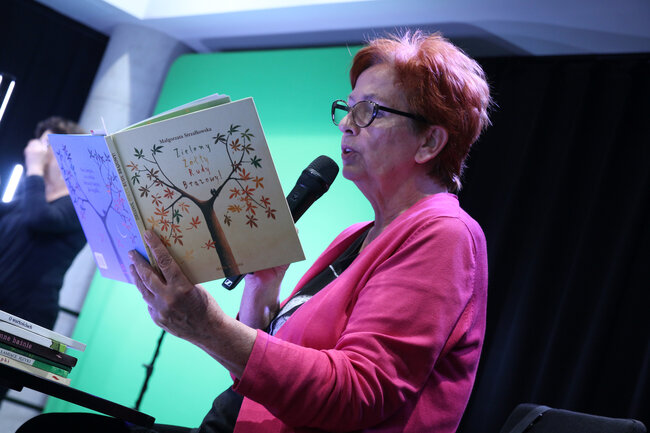 - Lubicie oglądać świat? - zapytała dzieci Małgorzata Strzałkowska na początku spotkania. Po czym odczytała swój wiersz pt. "Taka noc" z książki "Zielony, Żółty, Rudy, Brązowy!" Był on pretekstem do rozmowy, o uważności, czyli o tym, jak postrzegamy otaczającą nas rzeczywistość. W dalszej części wydarzenia uczestnicy dowiedzieli się m.in. skąd wzięły się nazwy miesięcy.