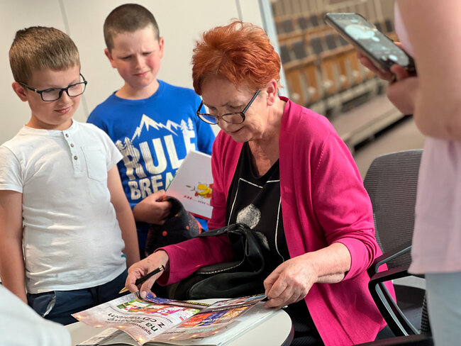 W ramach projektu "Teraz Książka!" gościliśmy dzisiaj (6 czerwca 2023 r.) w Leszczyńskiej Galerii Książki pisarkę i ilustratorkę Małgorzatę Strzałkowską. Na swoim koncie ma już ponad 150 wydanych pozycji i zajmuje czołowe miejsce w polskiej literaturze dla dzieci. Pisze wiersze, baśnie, opowiadania, teksty piosenek, scenariusze programów, krzyżówki i rebusy do dziecięcych magazynów, a nawet teksty na ubrania. Jej książkę pt. „Wierszyki łamiące języki” zna każdy, kto kocha zabawy językiem polskim.