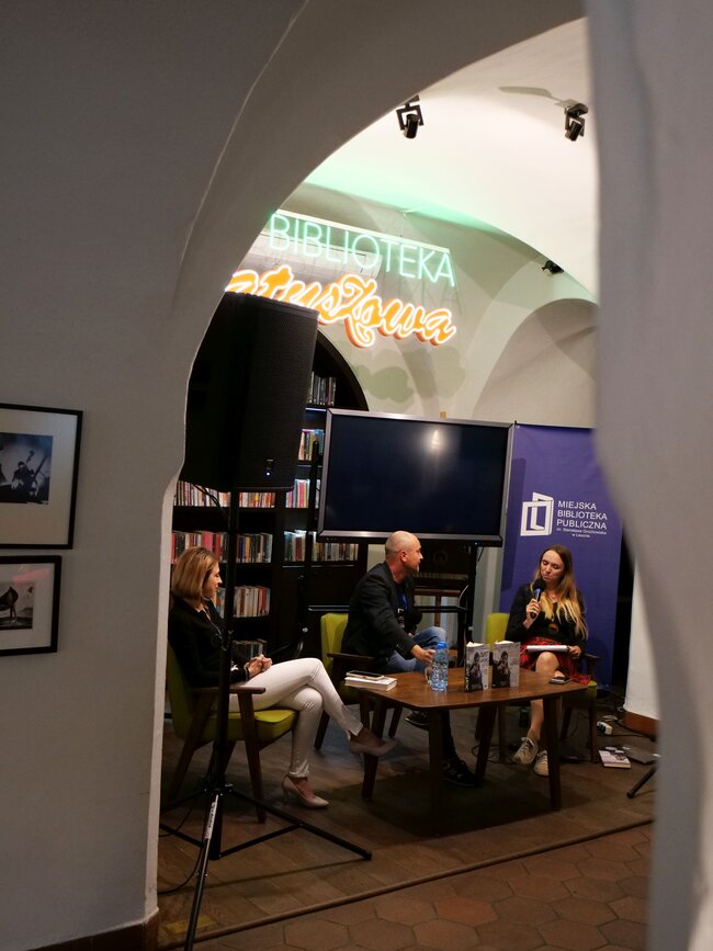 - Mówi się, że Polska ma trzy produkty eksportowe: pierogi, ptasie mleczko i polskie reportaże - powiedziała tytułem wstępu Agnieszka Ptaszyńska, prezes Fundacji i wymieniła legendarnych już, i aktualnie piszących najlepszych polskich reportażystów. W tym zaszczytnym gronie znalazł się i pochodzący z Leszna Mirosław Wlekły - gość wieczoru. Oprócz książki o Jonesie napisał: ,,All inclusive. Raj, w którym seks jest bogiem’’, ,,Tu byłem. Tony Halik’’, ,,Raban! O Kościele nie z tej ziemi’’’, ,,Przygoda dzika Toniego Halika’’, ,,Górski. Wygramy my albo oni’’ oraz ,,Jadą Haliki przez Ameryki’’ (wszystkie pozycje w zasobach MBP).