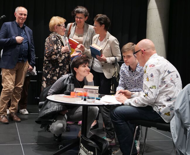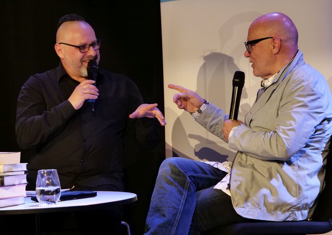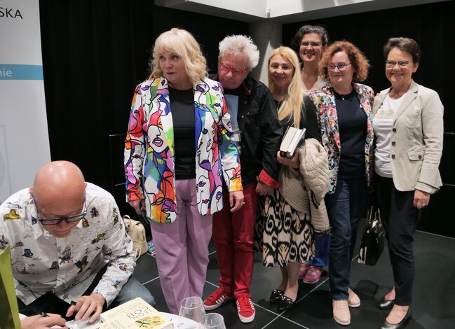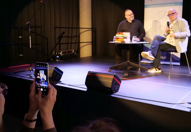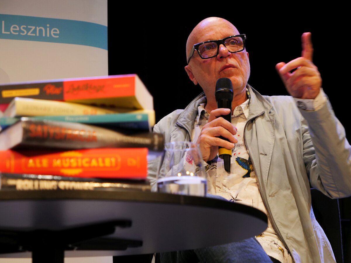 Powstała tak w 1989 roku ,,Satysfakcja - Historia zespołu The Rolling Stones’’ (w zasobach MBP) miała od tej pory już sześć wydań i rozkochała w muzyce kultowego zespołu tysiące Polaków łącznie z Wyszogrodzkim i Sterną. Na koncie piątkowego gościa są jeszcze między innymi: leksykon ,,Ale musicale!’’ (w zasobach MBP), przekłady Leonarda Cohena: ,,Księga tęsknoty’’, ,,Księga miłosierdzia’’ (w zasobach MBP) i ,,Płomień’’. Wyszogrodzki tłumaczy też Boba Dylana i ma w dorobku tłumaczenia najsłynniejszych musicali m.in. ,,Kotów’’ i ,,Upiora w operze’’. Na scenie LGK opowiadał o autobiograficznej powieści ,,Plac Leńskiego’’ do której ku rozpaczy wielu zgromadzonych zadeklarował nigdy nie pisać dalszego ciągu oraz zaczętej dopiero co powieści, której akcja nie ma z nim kompletnie nic wspólnego.