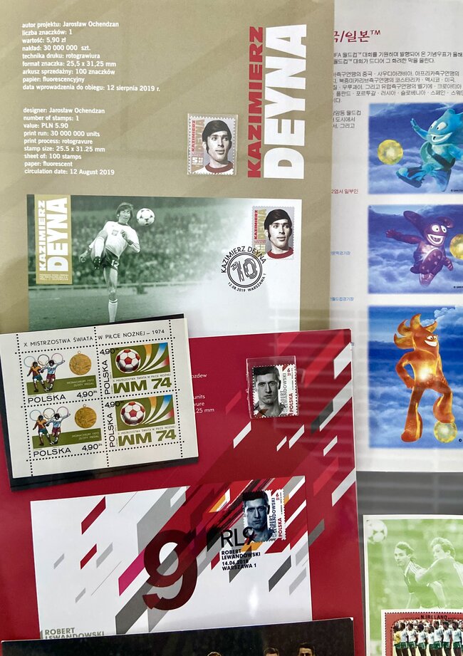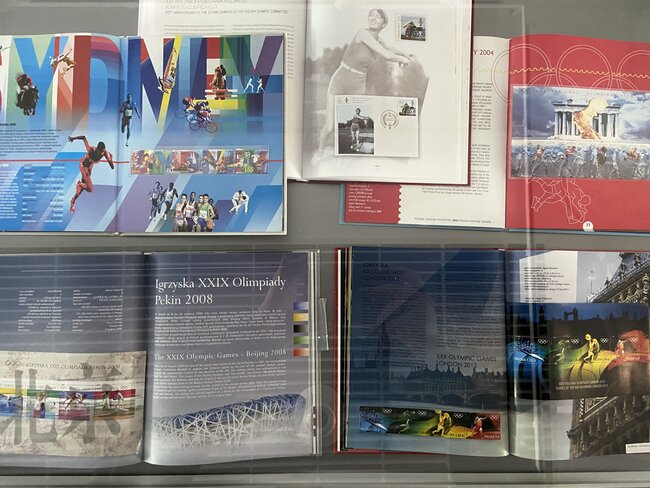 W kolejnej gablocie można zobaczyć znaczki i inne materiały związane z różnymi dyscyplinami sportowymi, które były rozgrywane podczas igrzysk olimpijskich na przestrzeni lat. Szczególną uwagę przyciągają znaczki i pocztówki przedstawiające wybitnych sportowców, takich jak Robert Lewandowski czy Kazimierz Deyna.
