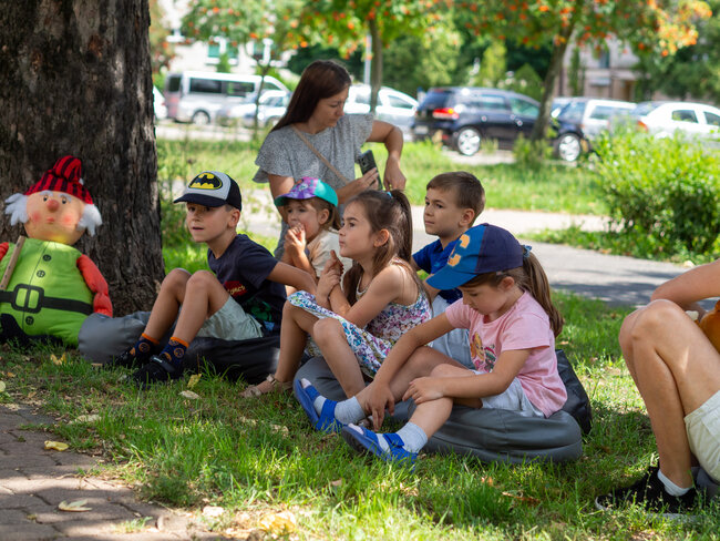 W ten piękny, słoneczny dzień 19 lipca wyruszyliśmy w podróż naszą Bajkomotywą! Pierwszą stacją była Biblioteka Kwadrat. Zatrzymaliśmy się tam, by opowiedzieć niesamowite historie Przedziadka i Ancymonów.