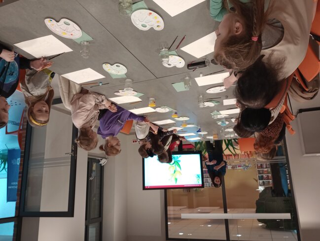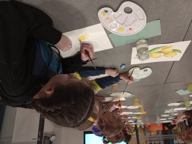 Pierwsze wiosenne kwiaty pojawiły się w bibliotece. Zakwitły tulipany na rysunkach uczestników warsztatów artystycznych prowadzonych przez plastyczkę i ilustratorkę Hannę Rykową.