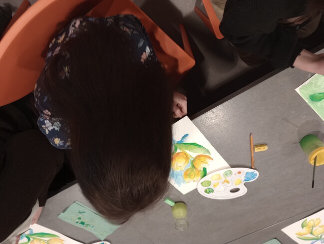 osób w wieku od lat 7 do lat…, w przyjaznej i twórczej atmosferze, dzięki wskazówkom i poradom prowadzącej warsztaty stworzyło swoje niepowtarzalne dzieła malarskie. Malowano akwarelami. Motywem przewodnim zaplanowanym przez Hannę były kwiaty.