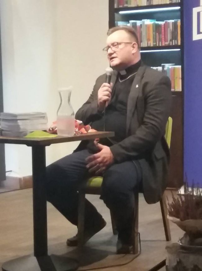 Spotkanie z ks. dr. Jarosławem Wąsowiczem odbyło się w Bibliotece Ratuszowej, gdzie ks. Wąsowicz zaprezentował swoją najnowszą książkę „Maryja z Ostrej Bramy. Strażniczka polskich Kresów” - album poświęcony kresom. Kapelan kibiców zabrał zebranych w niezwykłą podróż po Wilnie i Wileńszczyźnie. Opowieść o współczesnej Litwie i Polakach tam mieszkających wywarła ogromne wrażenie na słuchaczach. Niie zabrakło ciekawostek i anegdot związanych z działalnością ks. Wąsowicza za wschodnią granicą Polski. Na spotkanie przybyli także dawni mieszkańcy tych terenów oraz obecni mieszkańcy Wilna.