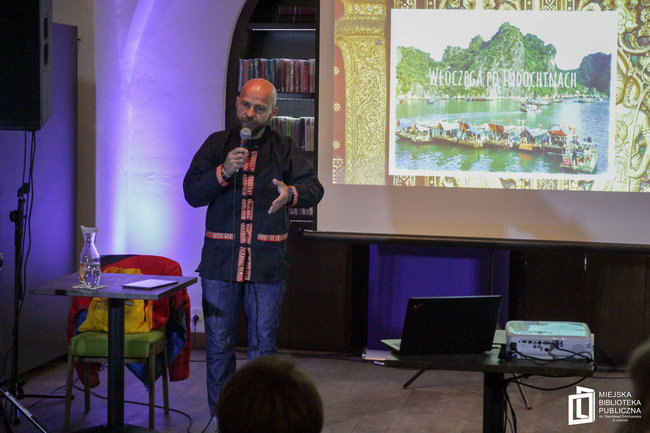 Goście biblioteki z nieukrywanym zachwytem wysłuchali opowieści obieżyświata, który przybliżył swoją podróż przez Wietnam, Laos, Kambodżę i Birmę. Prezentacja wypełniona była zabawnymi historiami, ciekawostkami, ale także ostrzeżeniami przed błędami, o które łatwo nie będąc świadomym realiów panujących w odwiedzanych miejscach. Podczas spotkania usłyszeć można było o tym, dlaczego wybrał właśnie taki sposób podróżowania i jakie korzyści to przynosi, o kompanach swoich wojaży czy też o różnorakich środkach lokomocji, z których korzystał przemierzając Indochiny.