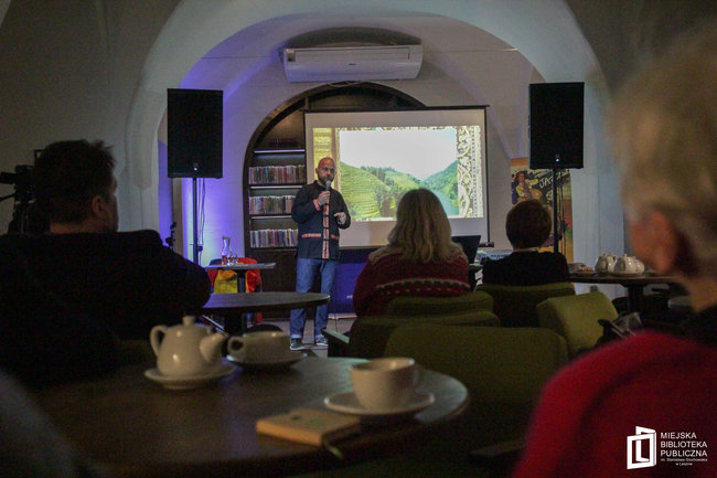 Piotr Wnuk - podróżnik, wagabunda, człowiek, który świat zwiedza świadomie i poznaje prawdziwe życie mieszkańców odwiedzanych krajów, opowiedział o swoich podróżach w czwartek, 5 marca 2020 br., w Bibliotece Ratuszowej podczas spotkania w ramach cyklu "Wokół Globusa."