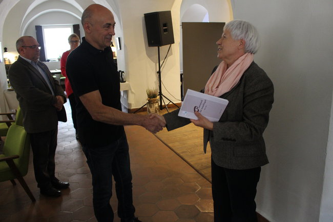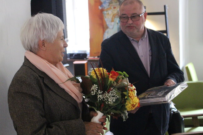 W środę 3 października po południu Bibliotekę Ratuszową odwiedziła p. Lena Bednarska. Spotkanie stało się okazją do pożegnania z wieloletnią dyrektorką Wojewódzkiej Biblioteki Publicznej w Poznaniu, z którą leszczyńska biblioteka miała przyjemność współpracować. Na spotkaniu obecny był dyr. MBP w Lesznie Andrzej Kuźmiński, który przekazał okolicznościowy upominek.