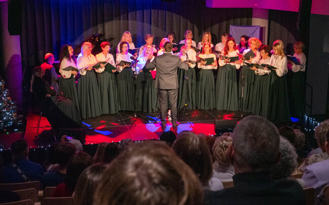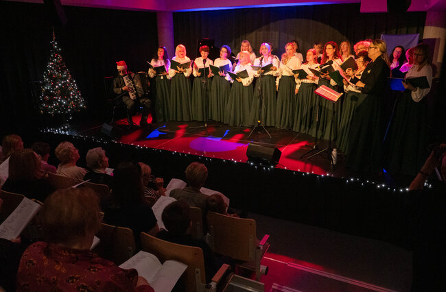 Wielogłosowe, naturalne brzmienie, uważność na słowo i emocję oraz wyraźna radość ze wspólnego śpiewu stworzyły przestrzeń, w której łatwo było zwolnić i na chwilę zapomnieć o przedświątecznym pośpiechu. Publiczność chętnie włączała się w śpiew, a biblioteczna sala szybko zamieniła się w miejsce spotkania, nie tylko koncertu.