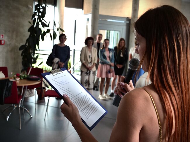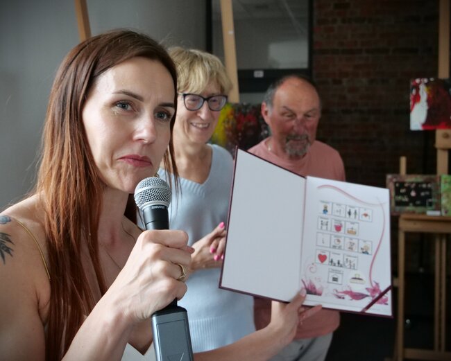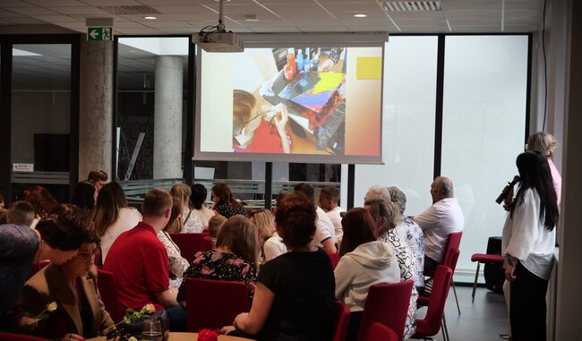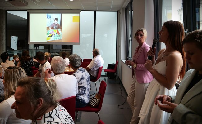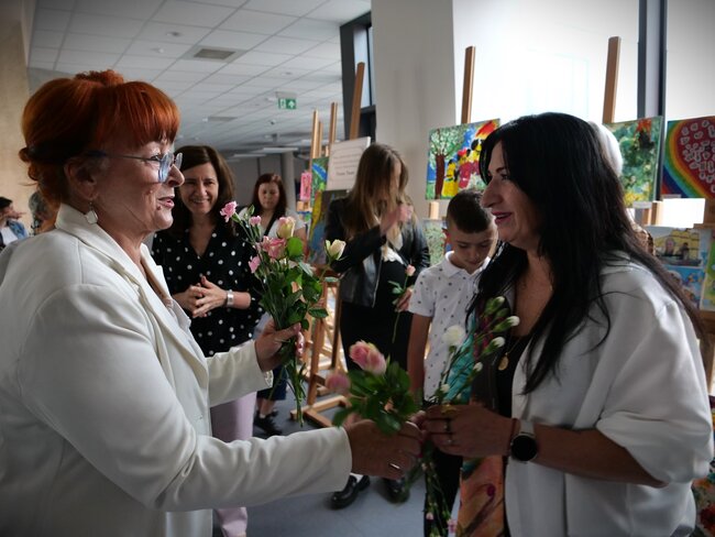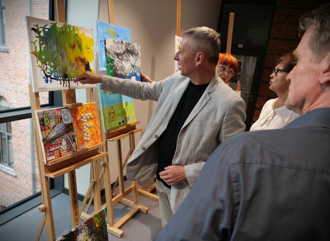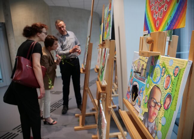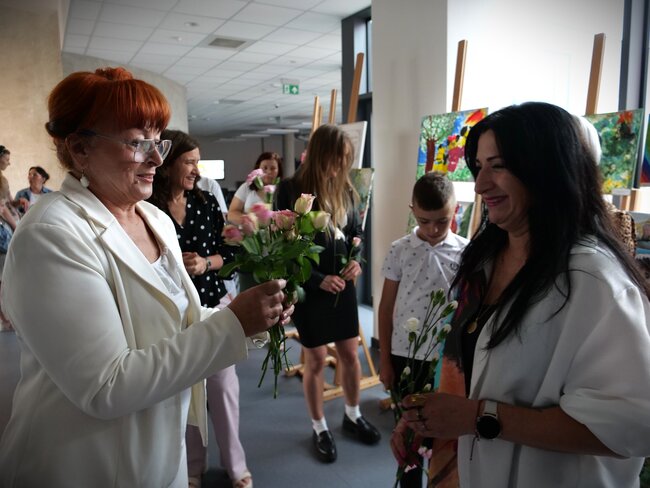 Podczas wernisażu zaprezentowano fotorelacje z aktów tworzenia. O uczniach i technikach artystycznych opowiadała pracująca z dziećmi artystka - Angelika Krall - Świetlik. Wszyscy oni dostali gromkie brawa.