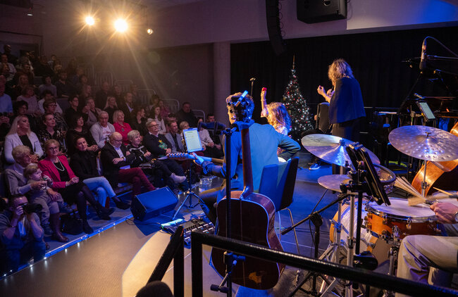 Leszczyńska Galeria Książki wypełniła się dźwiękami, które brzmią znajomo, ale tym razem skręciły w jazzową uliczkę. Podczas świątecznego koncertu zespołu Julia Sawicka Project publiczność usłyszała kolędy i bożonarodzeniowe tematy w nowych aranżacjach, opartych na improwizacji i swobodnym dialogu muzyków. Wydarzenie odbyło się dzięki współpracy Prezydenta Miasta Leszna Grzegorza Rusieckiego, Fundacji Edukacyjnej Pro Musica z Prezes Julią Sawicką-Kotomską oraz Miejskiej Biblioteki Publicznej im. Stanisława Grochowiaka w Lesznie, 28 grudnia 2025 roku.