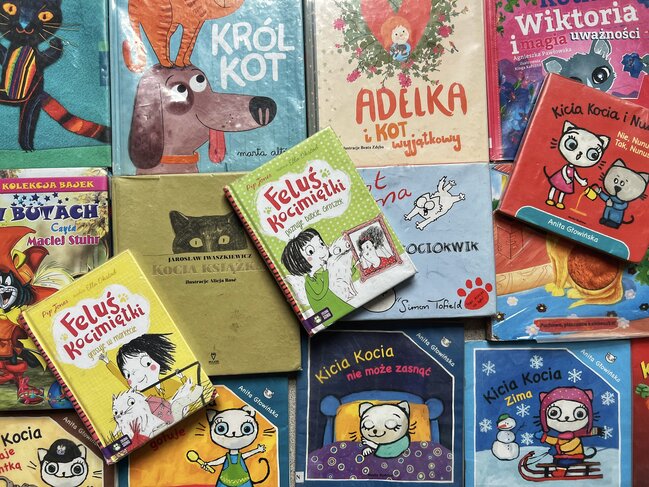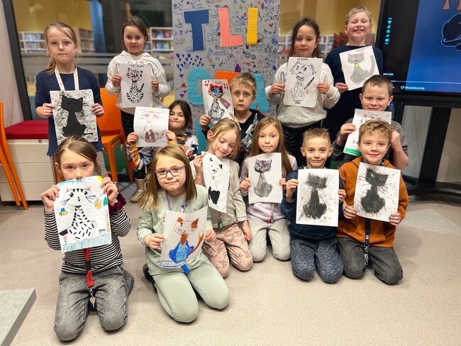 W części literackiej wybór padł na zbiór wierszy M. Brykczyńskiego i E. Wasiuczyńskiej „Kot ty jesteś”. Dzieci miały również okazję zapoznać się z opowiadaniami dotyczącymi tego słodkiego futrzanego czworonoga, które są dostępne w Wypożyczalni Dla Dzieci.